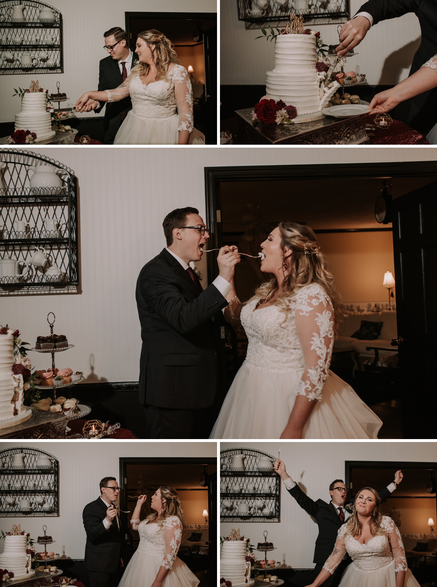 The love and emotions carried through to their reception. Crystal geodes, peroalized stone place cards, and pictures of Kalee and Jacob were displayed. Their colors were a combination of wine, mauve, and ivory with wooden accents and lots of greenery. Everyone was on the dance floor almost the whole time. SUCH A BLAST! Smaller weddings sometimes don't have a busy dance floor, but theirs sure did!